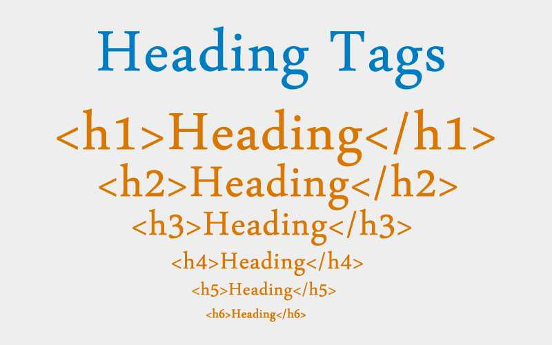 Heading tags mulai dari H1 hingga H6, dengan H1 sebagai judul utama atau level tertinggi, dan H6 sebagai sub-judul dengan level terendah.